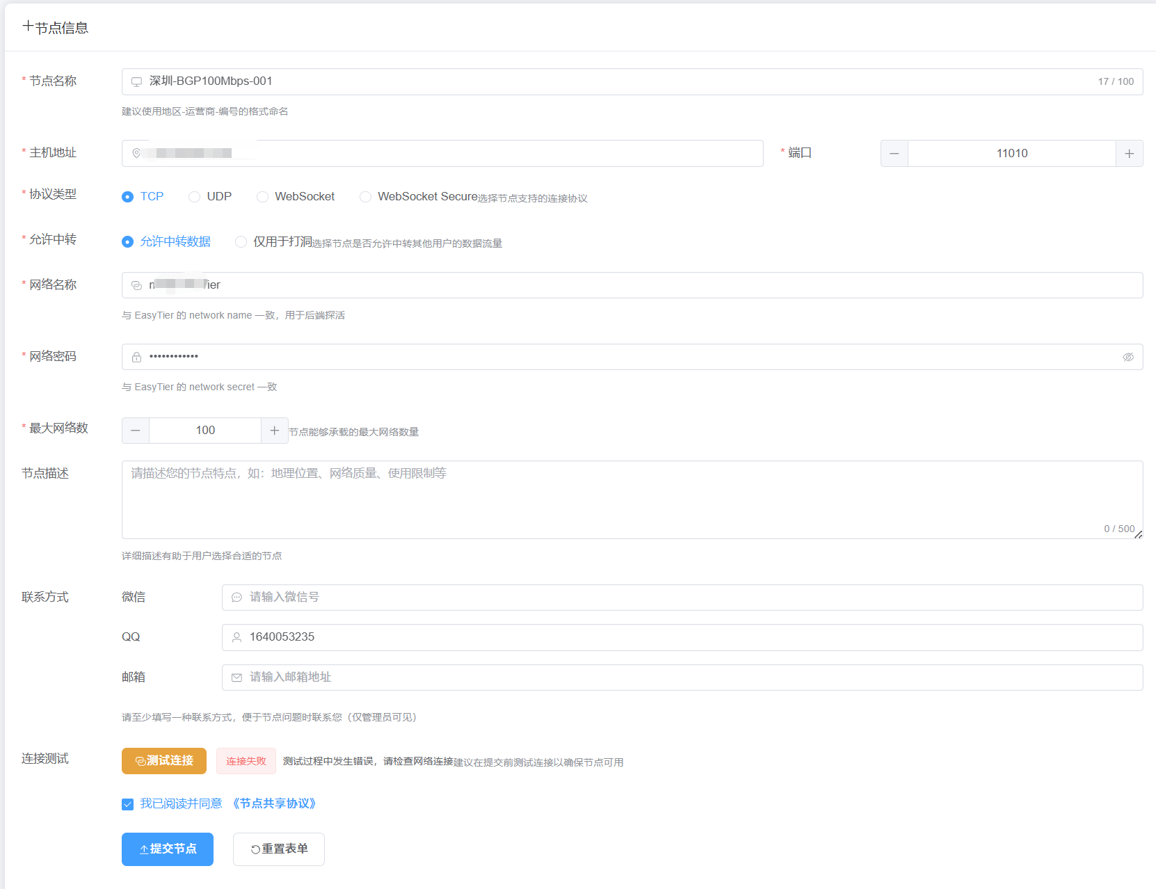 测试链接通过后提交节点等待审核就可以啦