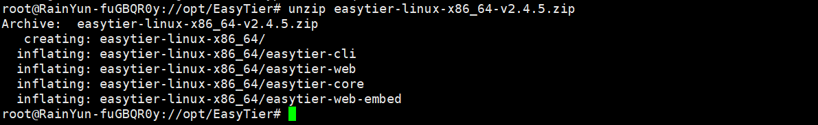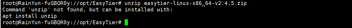 这里我没用安装unzip,这里使用提供的命令进行安装unzip 安装完成后再次输入 unzip 文件名进行解压