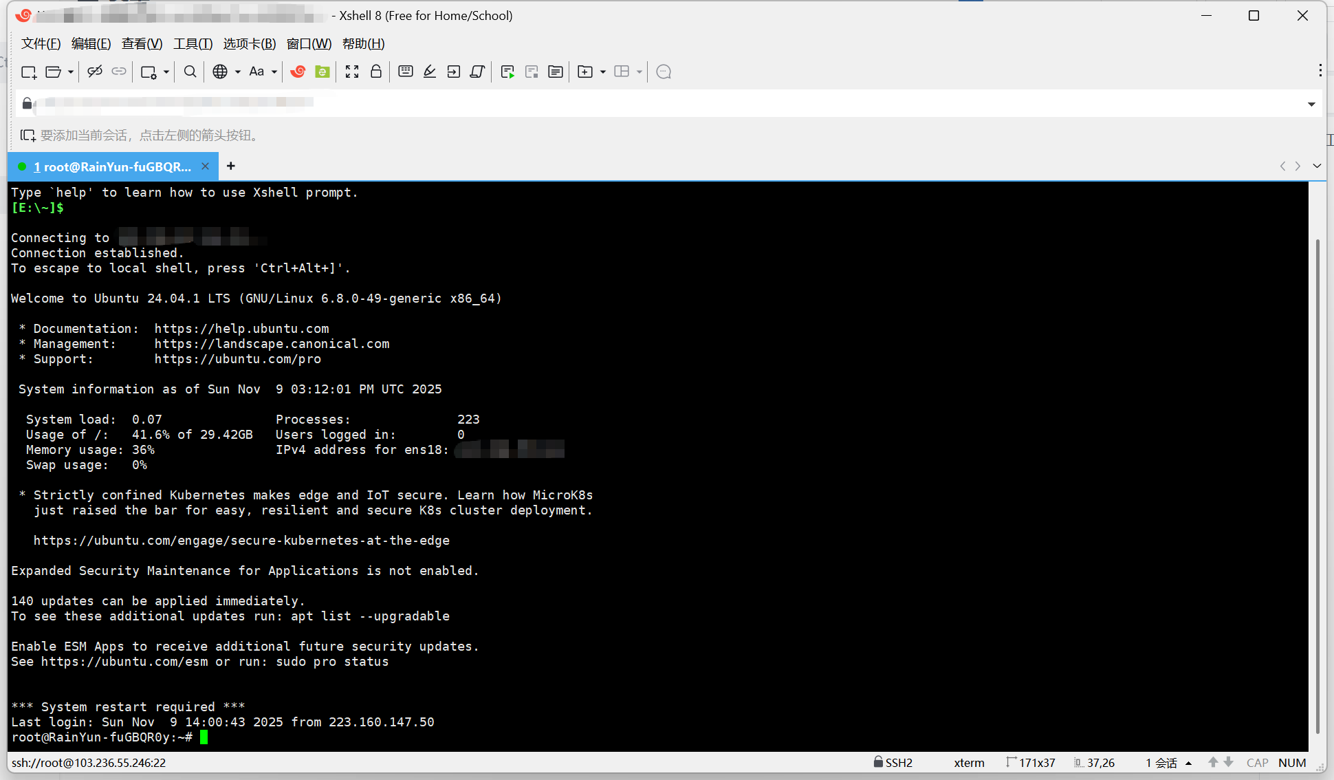 使用ssh软件链接服务器,我这里使用的为Xshell