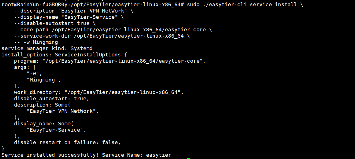 sudo ./easytier-cli service install \