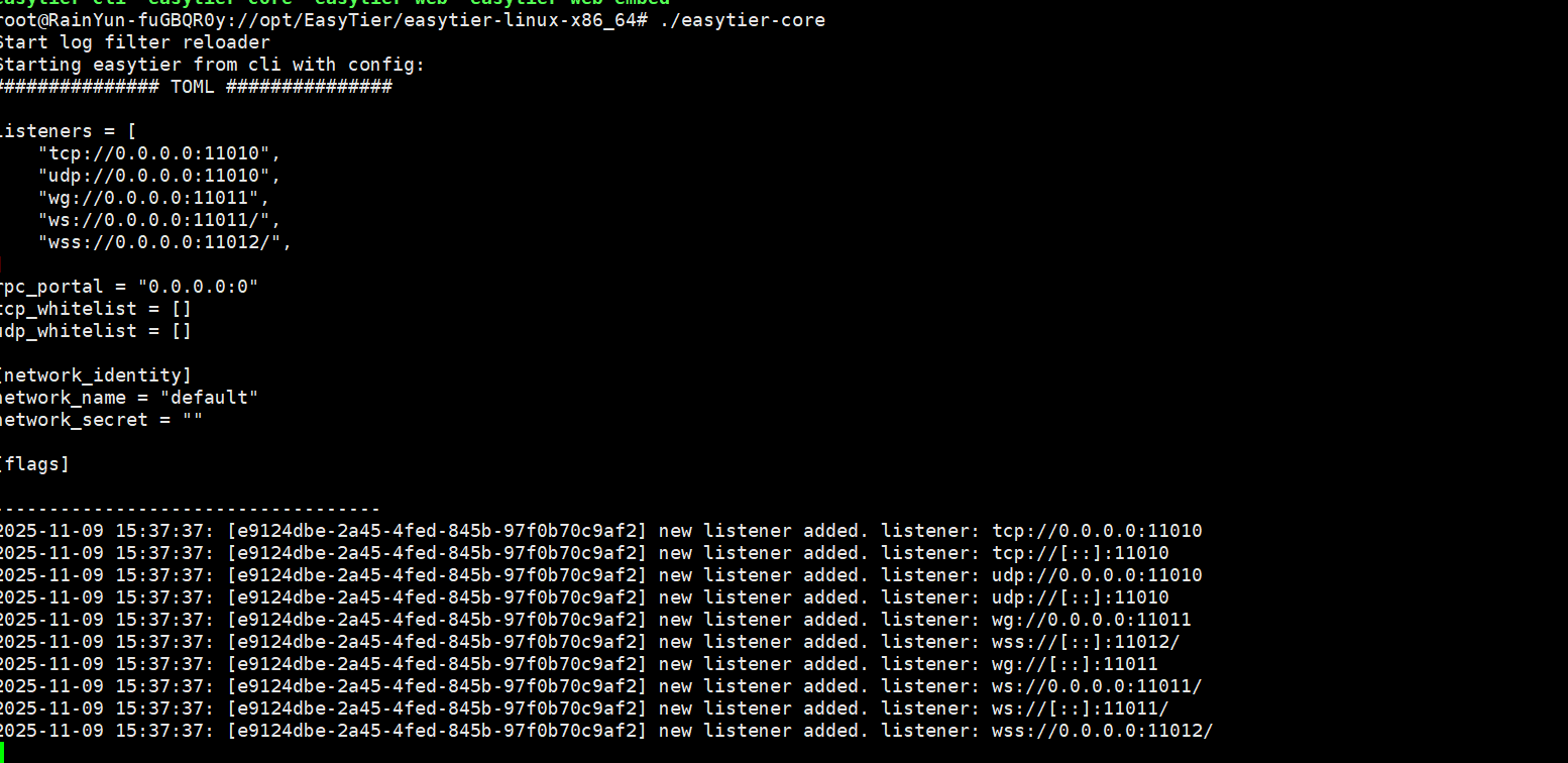 输入./easytier-core 貌似就启动了