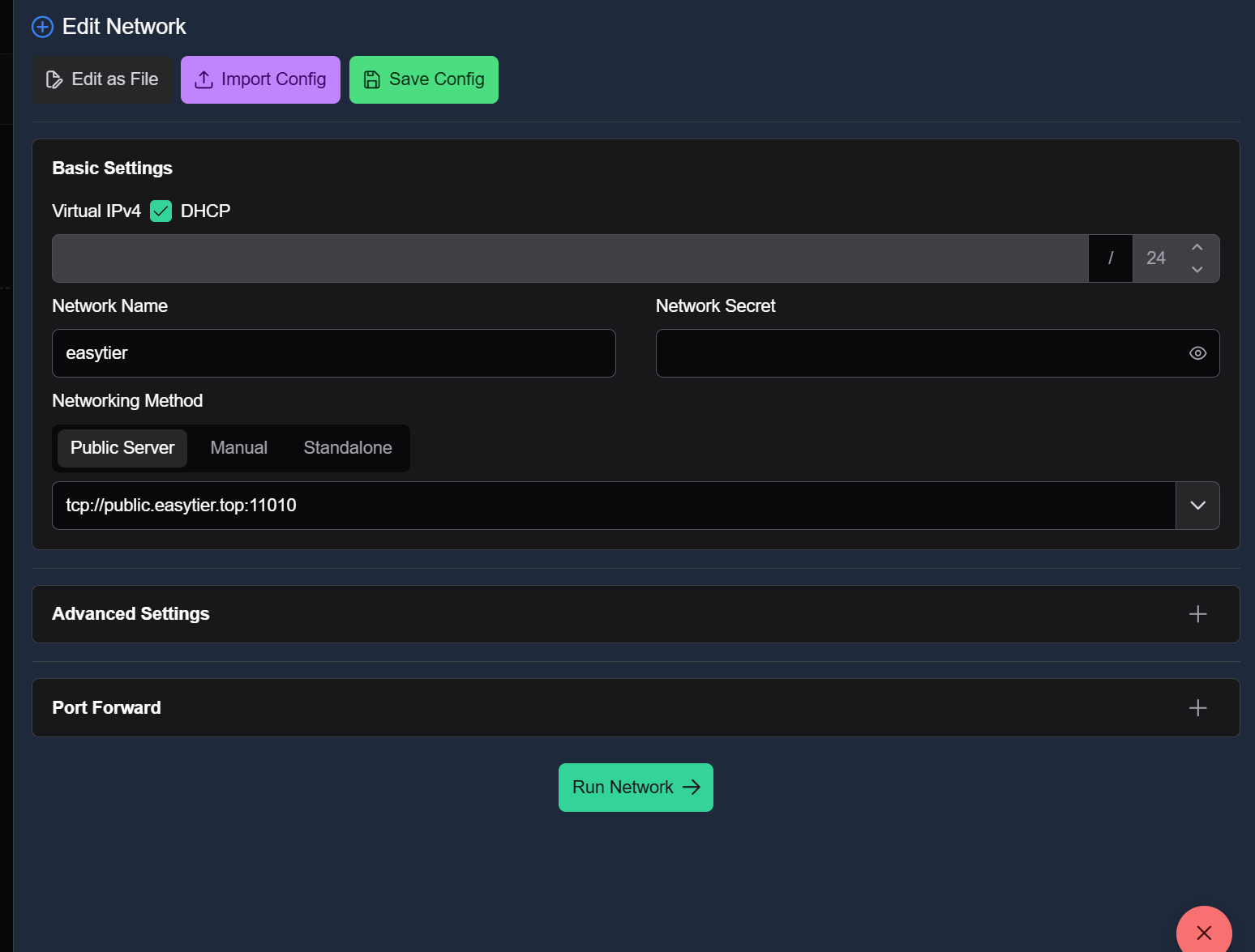 现在就可以用网页来进行配置EasyTier